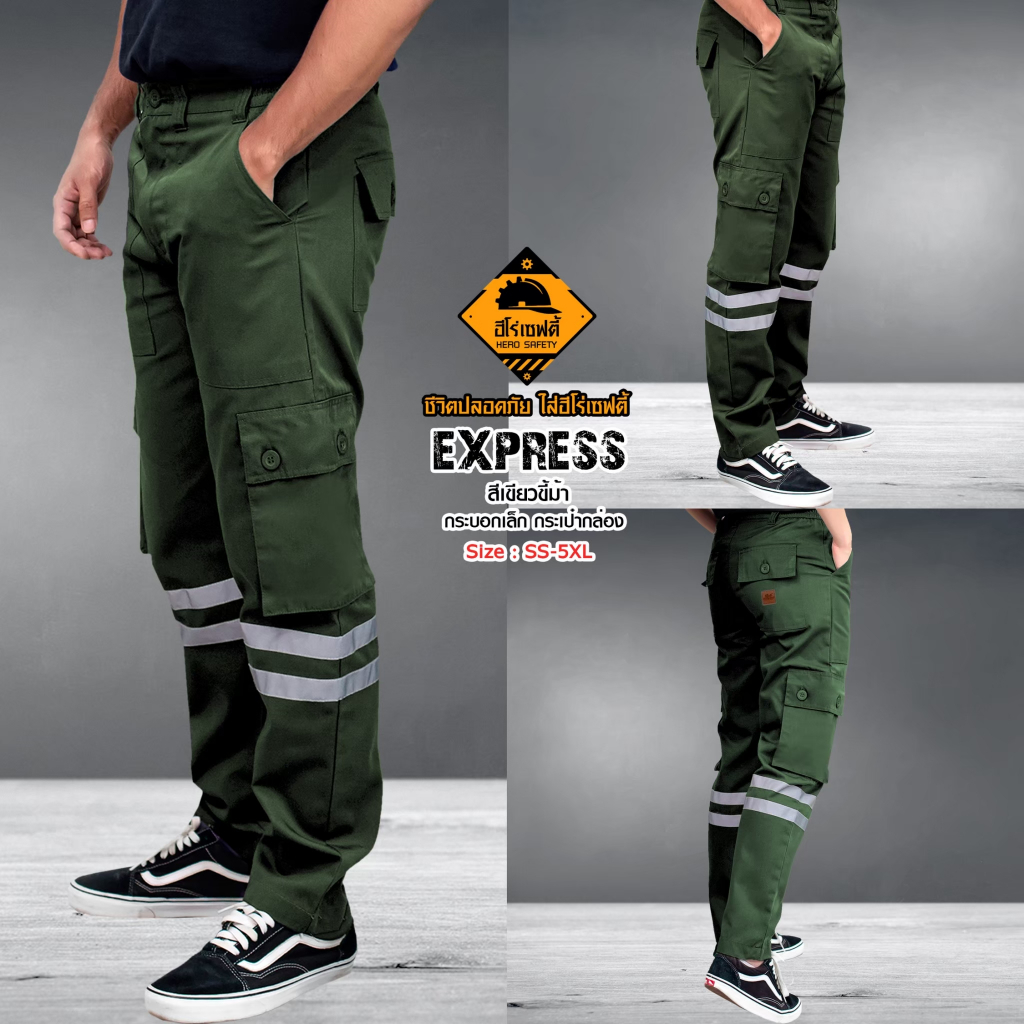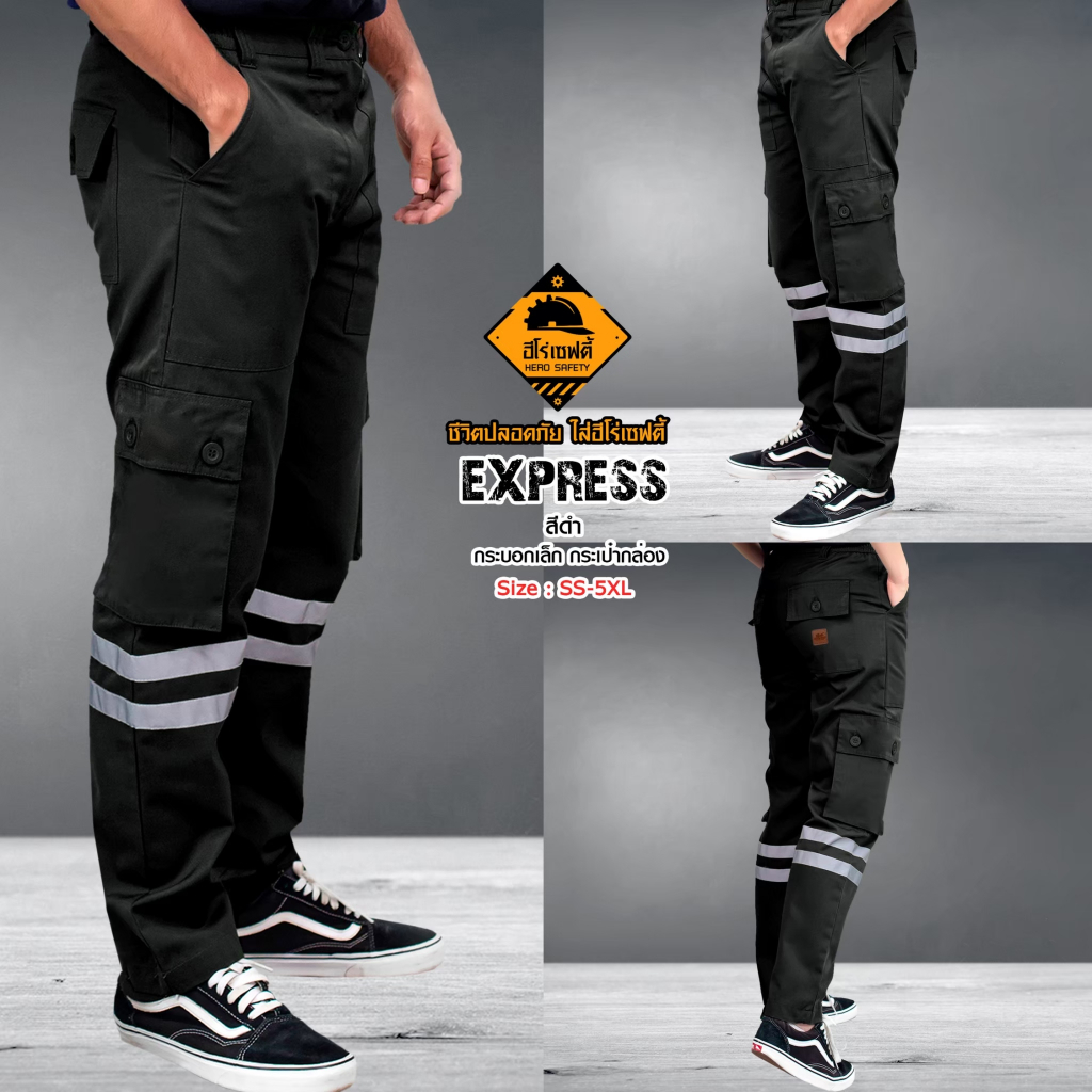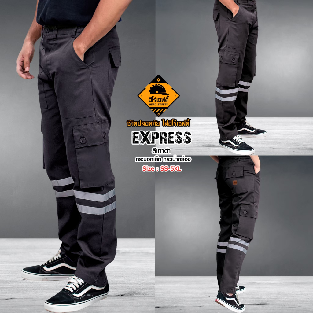 HERO SAFETY :กางเกงแถบสะท้อนแสง รุ่น Express กางเกงขนส่ง ทำงานช่าง คาร์โก้ กระเป๋ากล่อง ขายาว WORKWEARTHAILAND