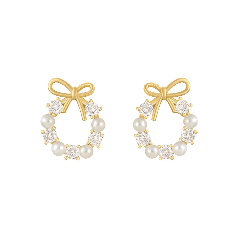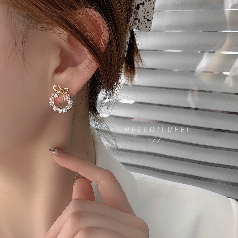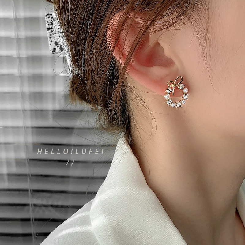 เครื่องประดับ ต่างหู ประดับโบ และไข่มุก แบบเรียบง่าย แฟชั่นเรโทร สไตล์เกาหลี สําหรับผู้หญิง