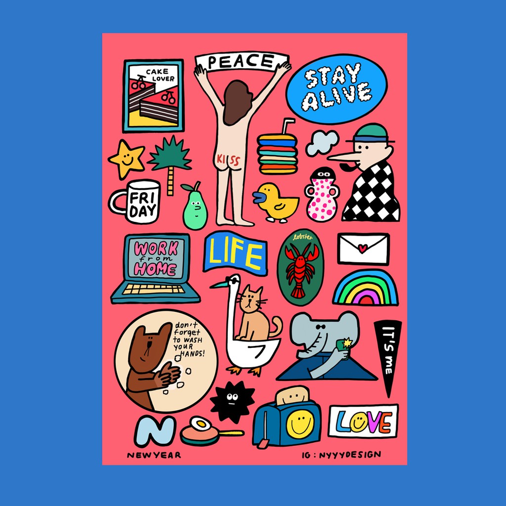 (Nyyydesign) Pink Sticker Waterproof Size A5 สติกเกอร์ กันน้ำ ไดคัทเเล้วลอกเเปะได้เลย ลอกไม่ทิ้งคราบกาว