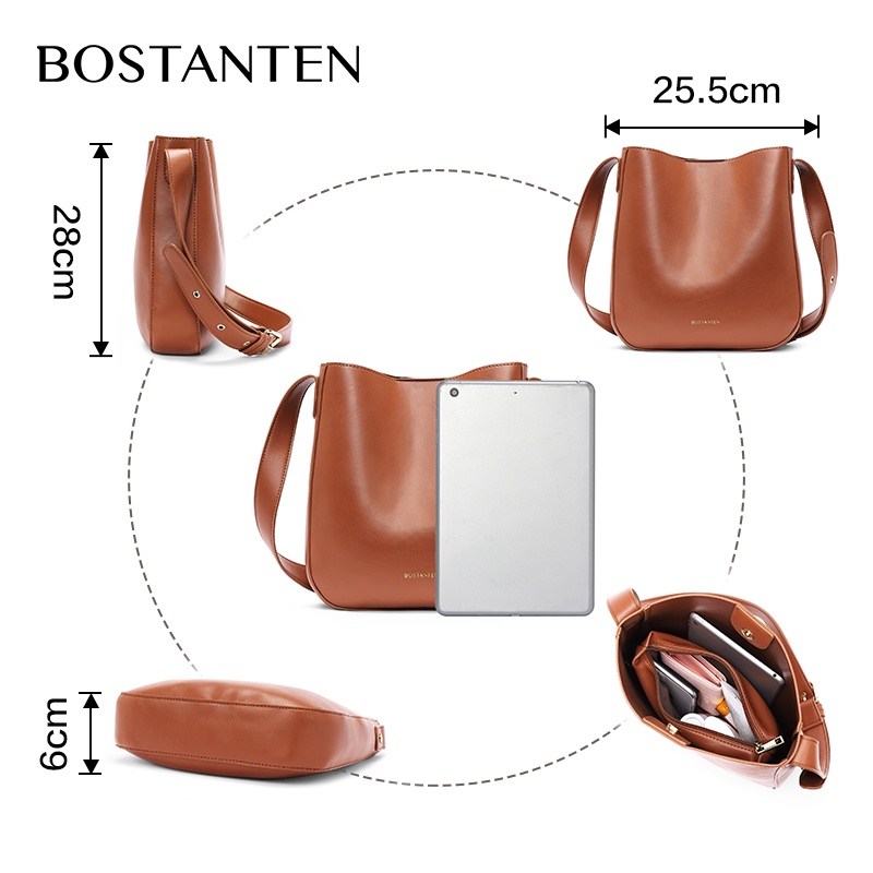 [สองชิ้นลบ 66] Bostanten กระเป๋าผู้หญิง กระเป๋าสะพายข้าง ทรงถัง แฟชั่นผู้หญิง
