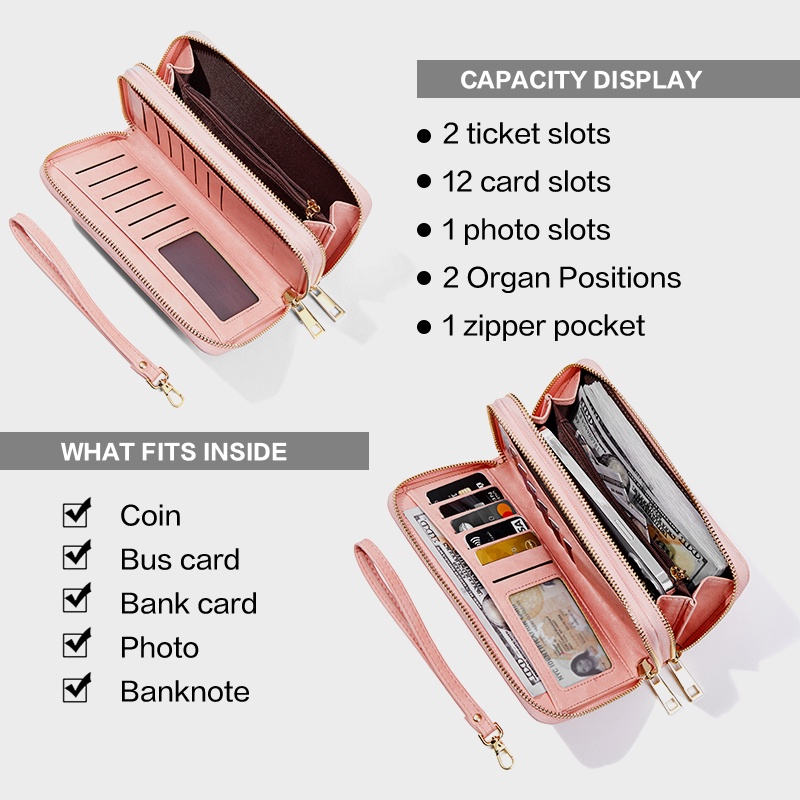 [ส่งไวจากไทย] Bostanten กระเป๋าสตางค์ หนัง PU แบบใบยาว 2 ชั้น ความจุขนาดใหญ่ สำหรับผู้หญิง