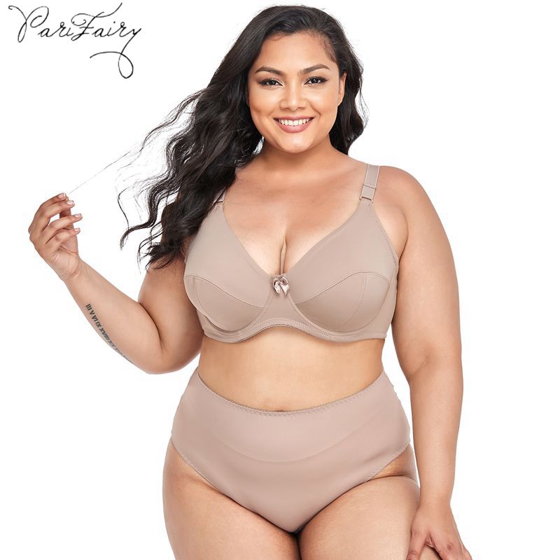 Parifairy เซตชุดชั้นในผู้หญิง เสื้อชั้นในผู้หญิงไซส์ใหญ่ เสื้อในมีโครง กางเกงในคนอ้วน 38E 40E 42E 44E 46E 48E-3981#Set