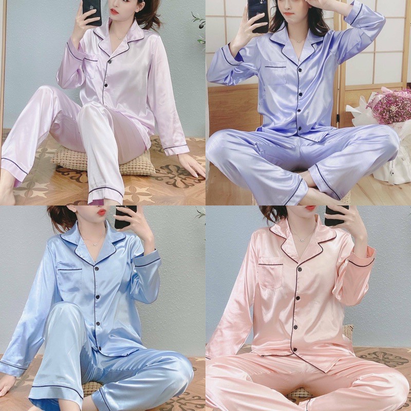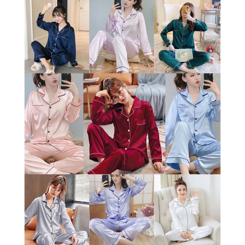 ชุดนอนแขนยาวขายาว ผ้าซาติน free size