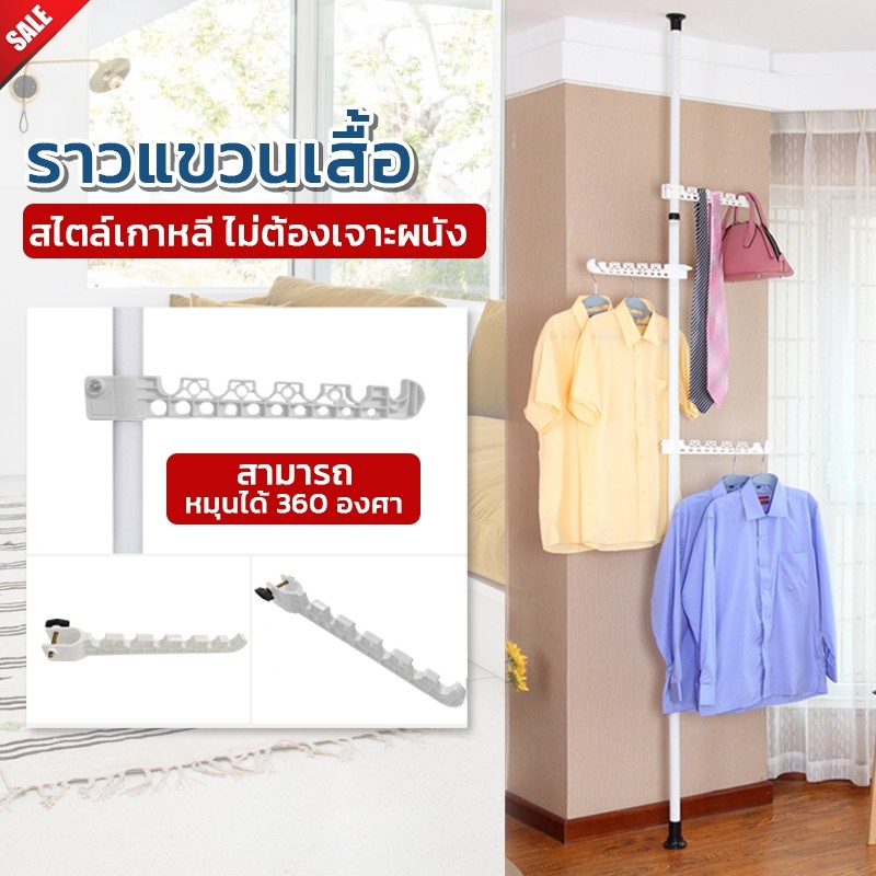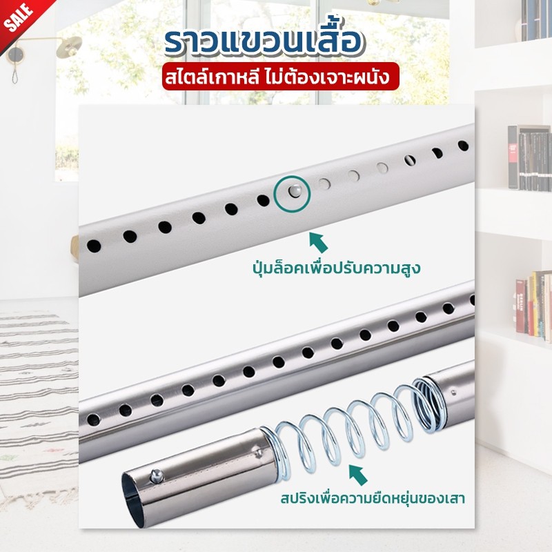 【สินค้าพร้อมส่ง】ราวตากผ้า ราวตากผ้าคอนโด ก้านแขวนเสื้อ แบบตั้ง ประหยัดพื้นที่ ไม่ต้องเจาะเพดาน