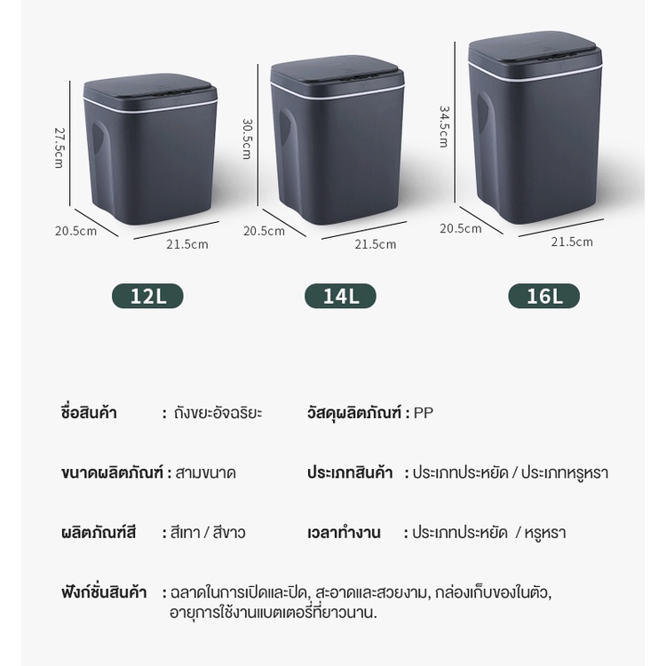 【สินค้าพร้อมส่ง】ถังขยะอัตโนมัติ ถังขยะเปิด-ปิดอัตโนมัติ ถังขยะอัจฉริยะแบบเซ็นเซอร์ ขนาด16L