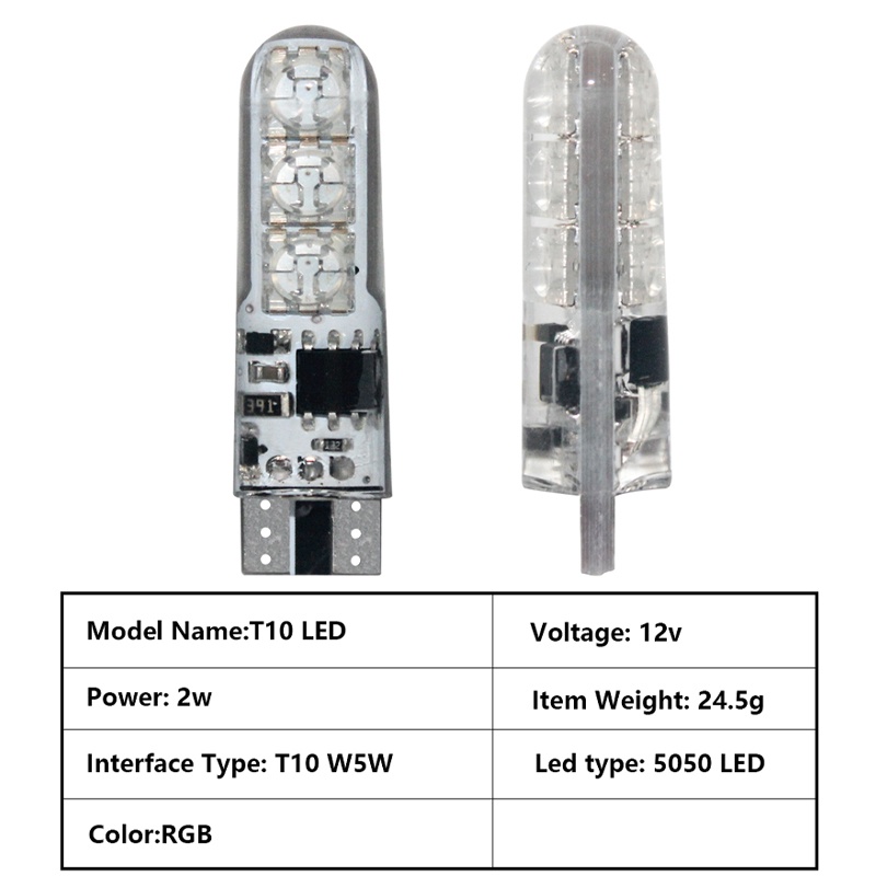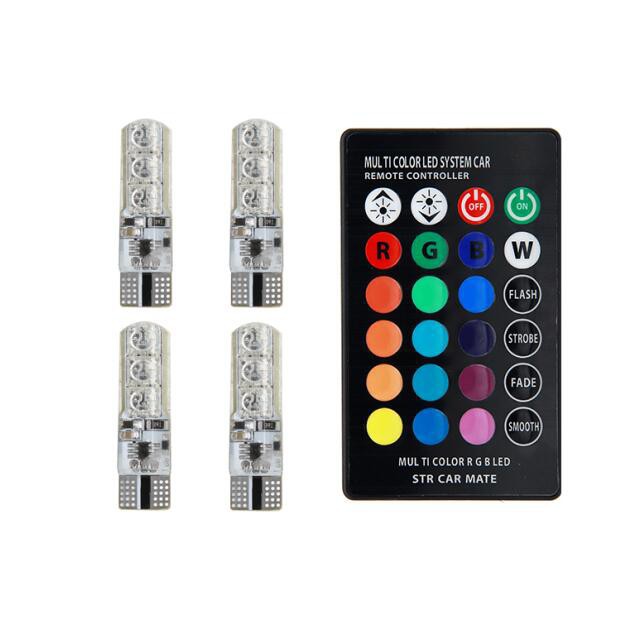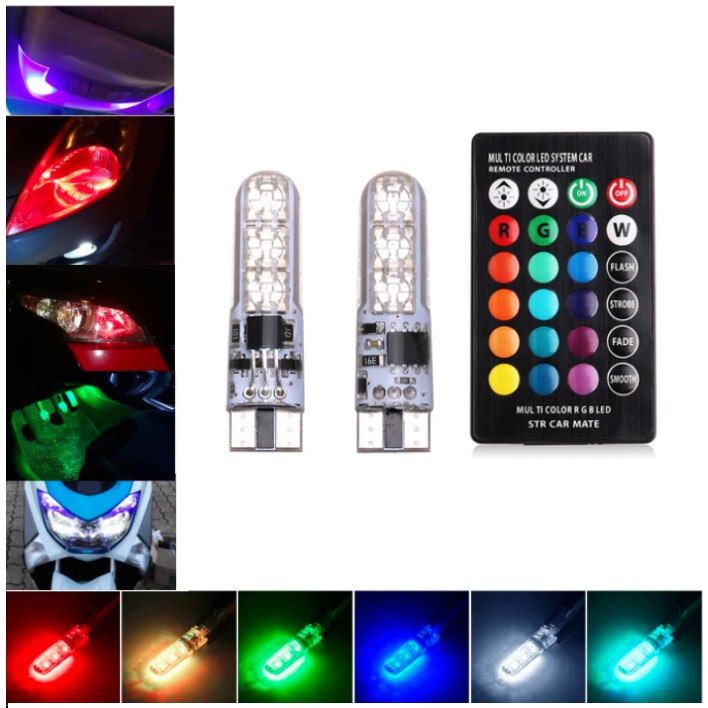 T10 หลอดไฟ LED 12V W5W ซิลิกาเจล RGB 12 COB ไฟ LED ไฟติดรถยนต์ควบคุมด้วยรีโมท
