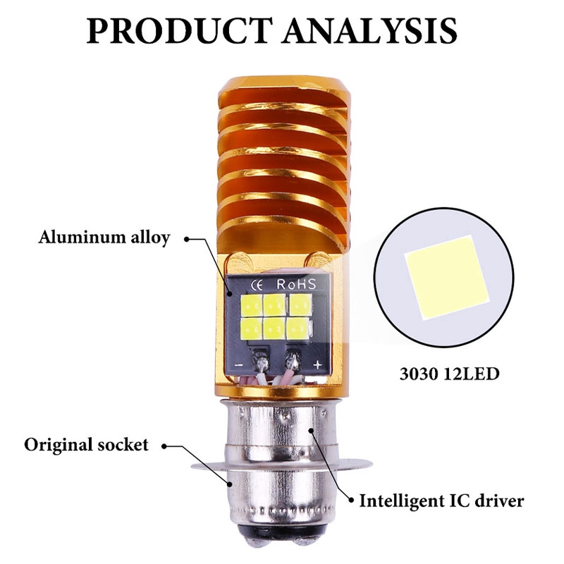 หลอดไฟหน้า LED P15D H4 6000K 3030 อุปกรณ์เสริมรถจักรยานยนต์ สกูตเตอร์ 1 ชิ้น