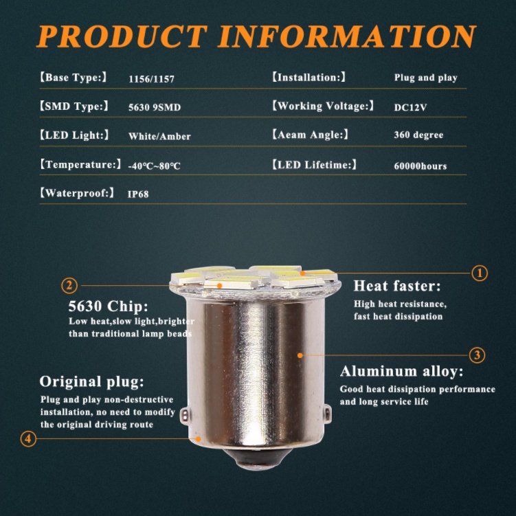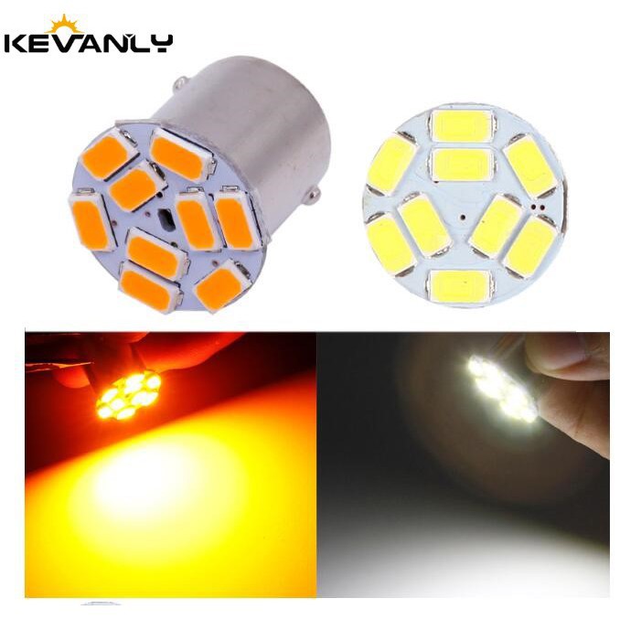 1pc หลอดไฟเลี้ยวไฟเบรค S25 1156 BA15S P21W BAU15S PY21W 5630 9Smd สีเหลืองอําพันสําหรับรถยนต์ 12-24v