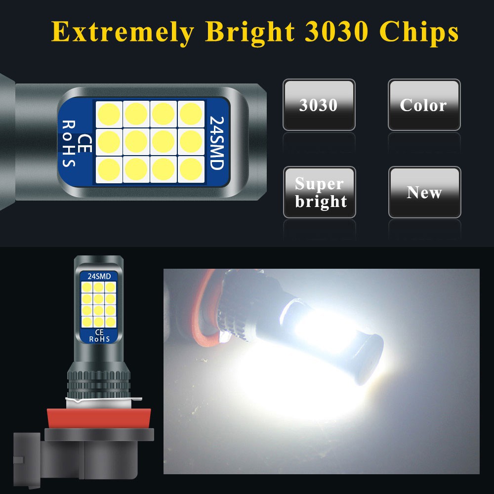 หลอดไฟตัดหมอก Led H8 H9 H11 3030 24SMD 12V สําหรับรถยนต์ 2 ชิ้น