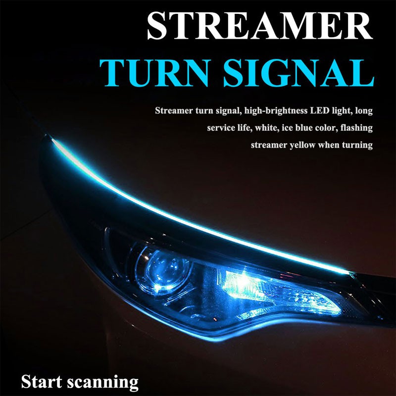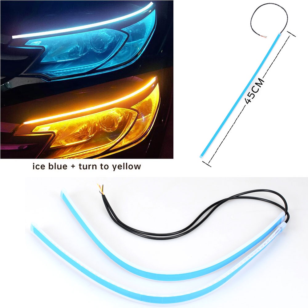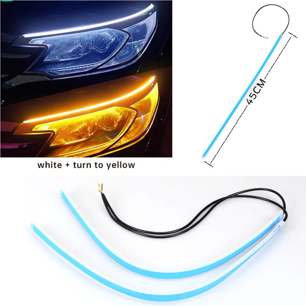 2pcs เริ่มการสแกน ไฟ LED รถยนต์ ไฟวิ่งกลางวัน แถบกันน้ำแบบยืดหยุ่น ไฟหน้าอัตโนมัติ ไฟเลี้ยวสีขาว Drl สีเหลือง สำหรับรถยนต์