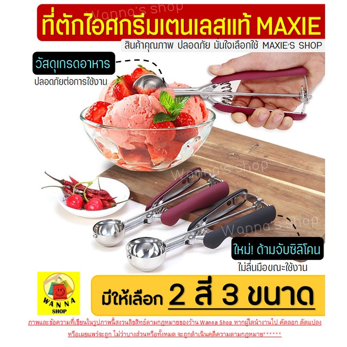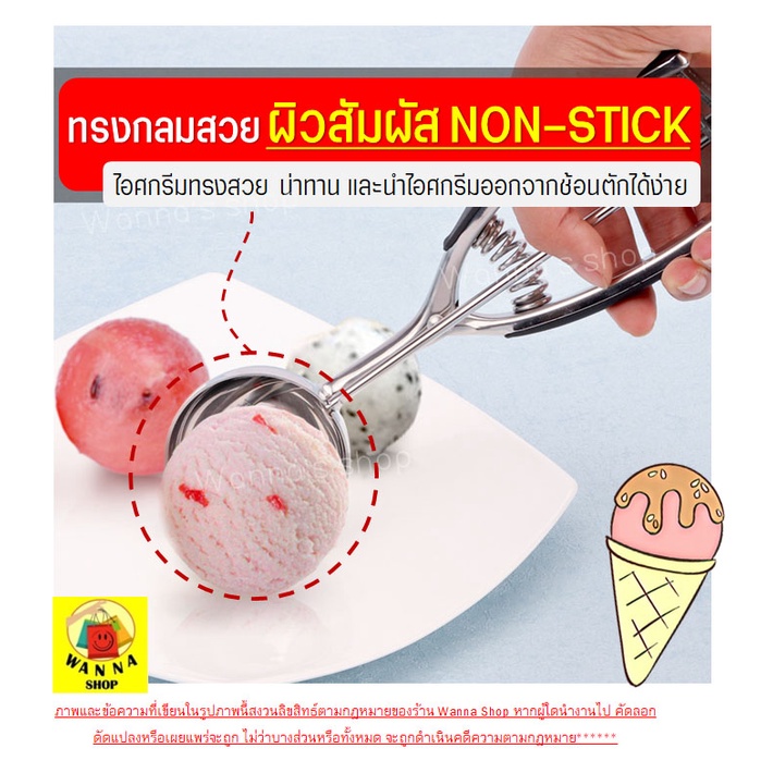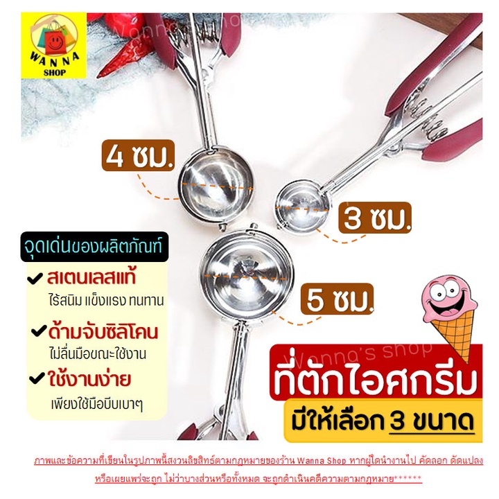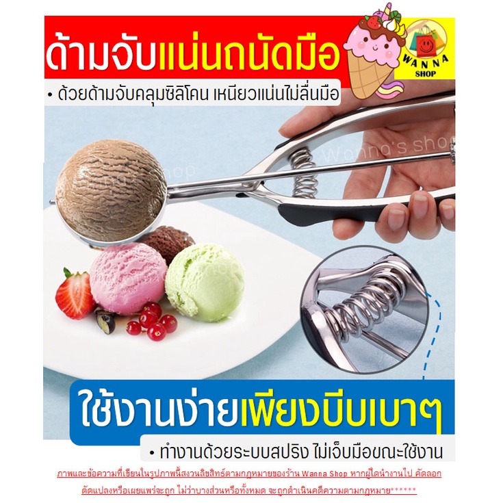🔥ส่งฟรี🔥 ที่ตักไอศกรีม สแตนเลสแท้ WANNA มีให้เลือกซื้อถึง2สี!3ขนาด! ที่ตักไอติม ที่ขูดไอศครีม ที่ตักไอศครีมแบบขูด