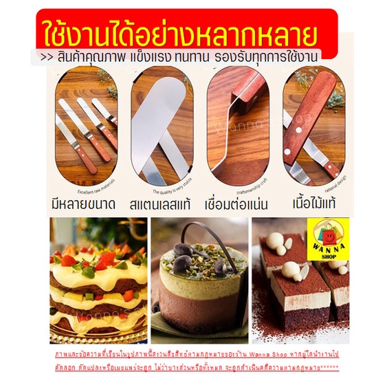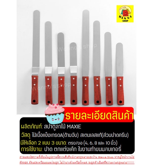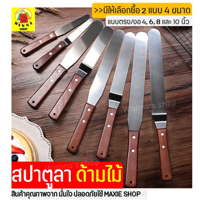 🔥ส่งฟรี🔥 สปาตูล่า สเตนเลสแท้(ด้ามไม้) wanna แบบตรง/แบบงอ ขนาด 4 6 8 10นิ้วที่ปาดเค้ก ที่ปาดหน้าเค้ก มีดปาดเค้ก สปาตูลา
