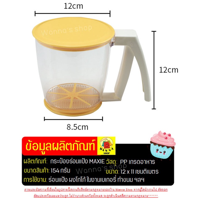 🔥ส่งฟรี🔥 ที่ร่อนแป้ง กระป๋องร่อนแป้ง [994] WANNA ใหม่!ระบบมือบีบพร้อมฝาปิด ตะแกรงร่อนแป้ง [994สีเหลือง]