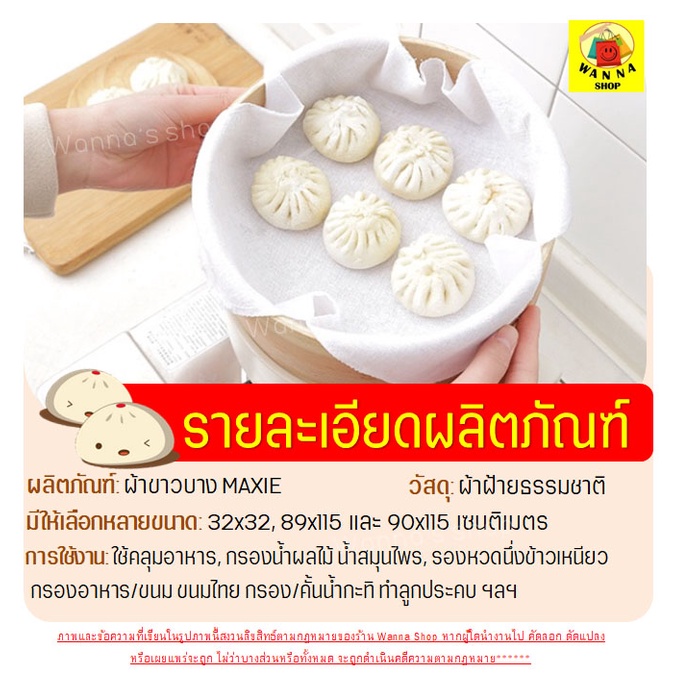 🔥ส่งฟรี🔥 ผ้าขาวบาง WANNA (มีให้เลือก3ขนาด) เย็บริมอย่างดี! ผ้ากรองชา ผ้ารองนึ่ง