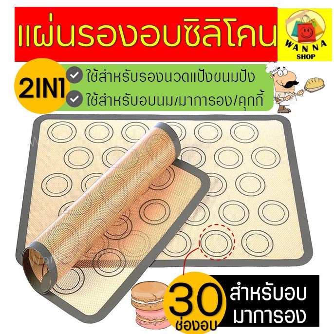 🔥ส่งฟรี🔥 แผ่นรองอบซิลิโคน WANNA 2IN1(ใช้รองนวด/รองอบ) พิมพ์ลายอบมาการอง/คุกกี้ 30 ช่องอบ แผ่นซิลิโคนรองอบมาการอง