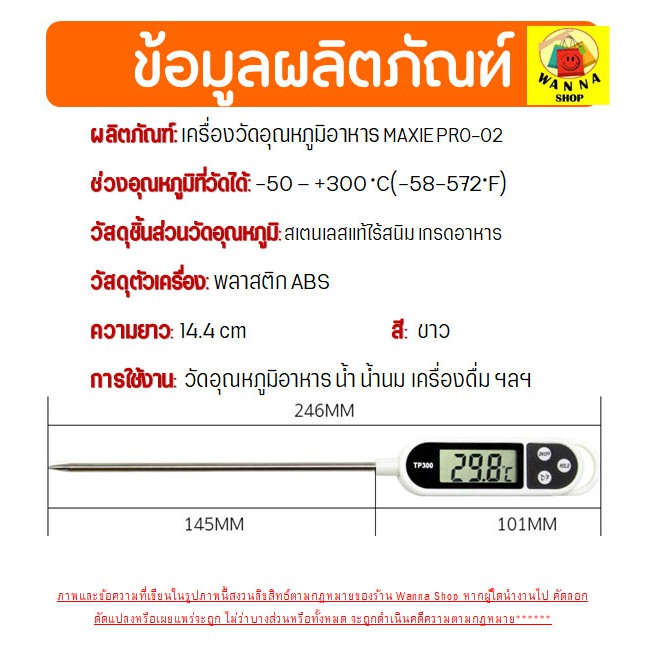 🔥ส่งฟรี🔥 เทอร์โมมิเตอร์วัดอุณหภูมิอาหาร WANNA02 เครื่องวัดอุณหภูมิในอาหาร เครื่องมือวัดอุณหภูมิ [102]