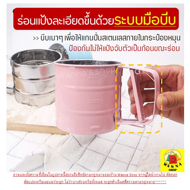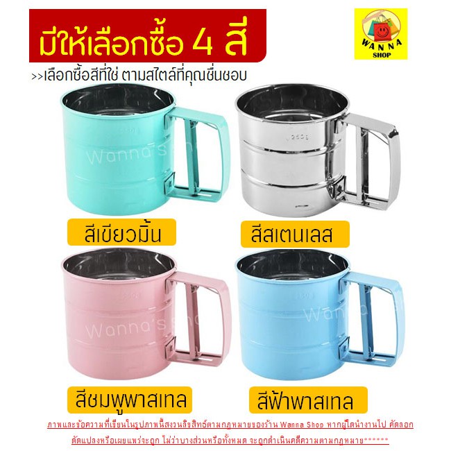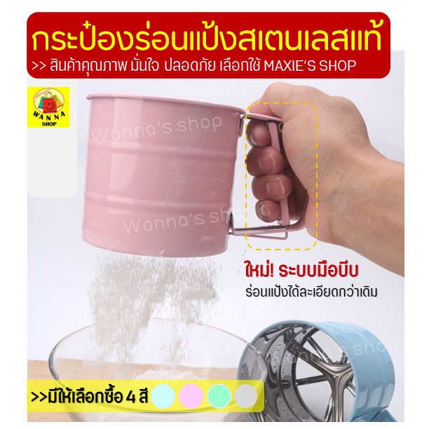 🔥ส่งฟรี🔥 ที่ร่อนแป้ง กระป๋องร่อนแป้งสแตนเลส wanna ใหม่ใช้ระบบมือบีบ มีให้เลือกซื้อถึง4สี!โรยไอซิ่ง ที่ร่อนแป้งแบบสแตนเลส