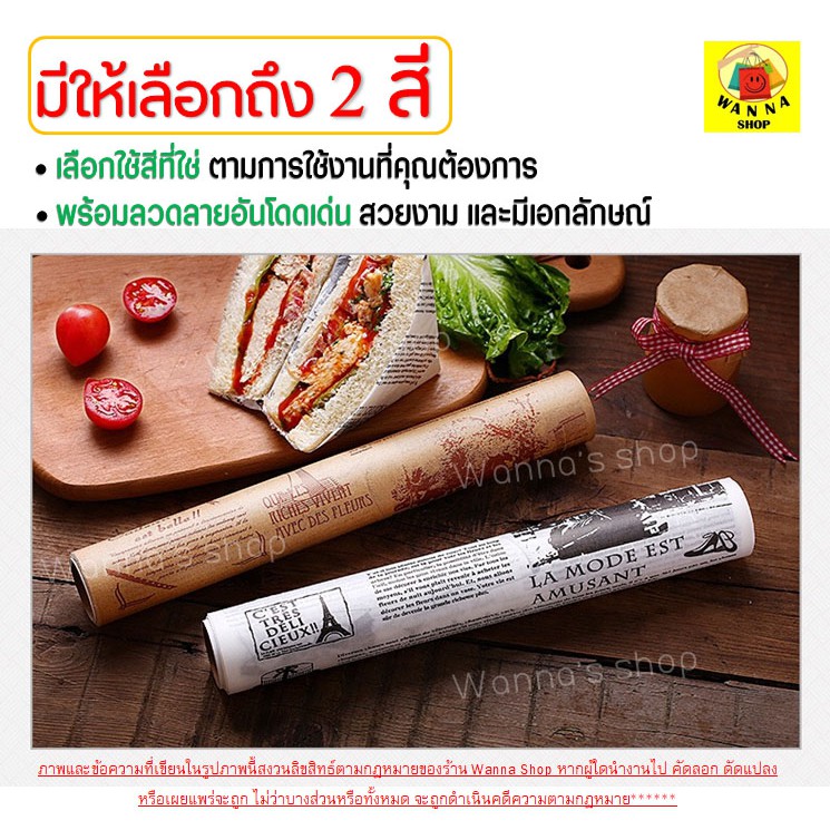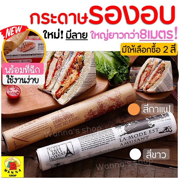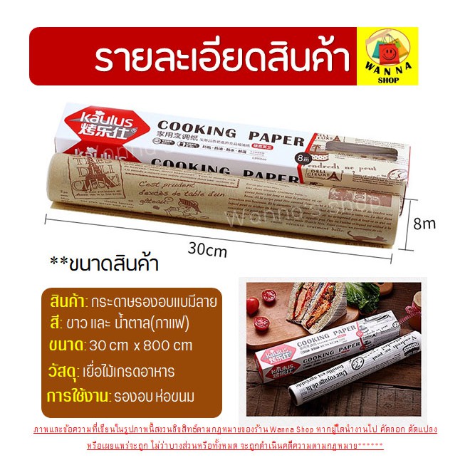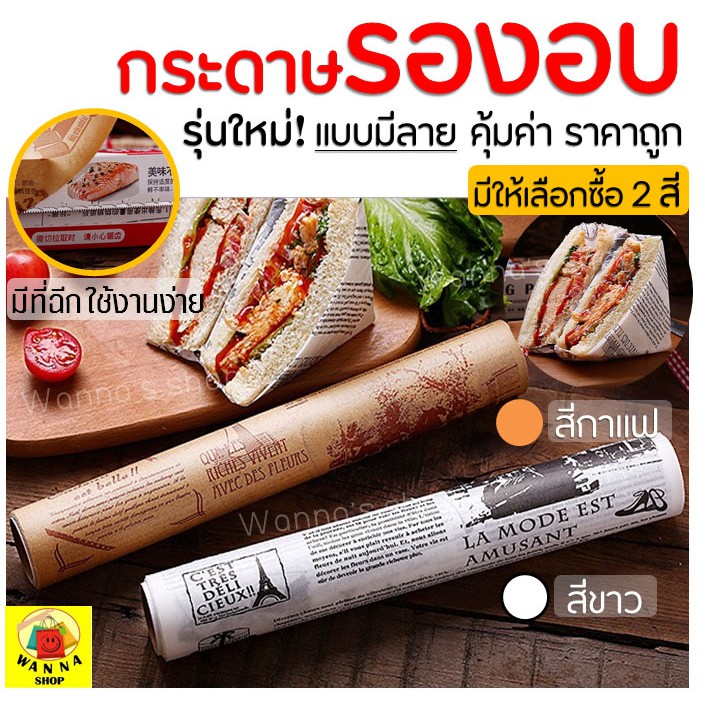 🔥ส่งฟรี🔥 กระดาษรองอบขนม แบบมีลาย WANNA มีให้เลือก 2 สี(ขาว,กาแฟ) แผ่นรองอบขนม baking paper parchment paper กระดาษไขรองอบ