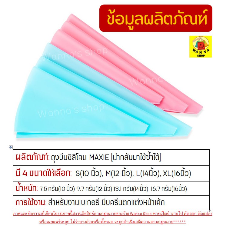🔥ส่งฟรี🔥 ถุงบีบครีมซิลิโคน wanna [นำกลับมาใช้ซ้ำได้]มีให้เลือกซื้อ4ขนาด2สี ถุงบีบวิปครีม ถุงบีบครีม