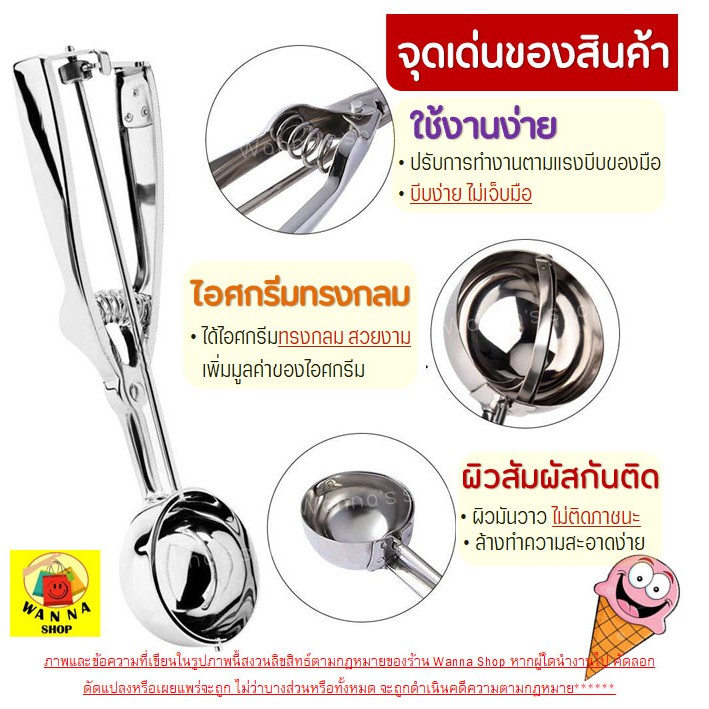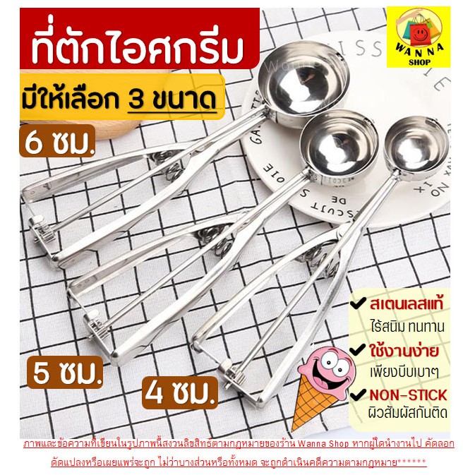 🔥ส่งฟรี🔥 ที่ตักไอศครีมสแตนเลส WANNA มีให้เลือกซื้อถึง 3 ขนาด! ที่ตักไอติม ที่ขูดไอศครีม Ice Cream Scoop 227-229