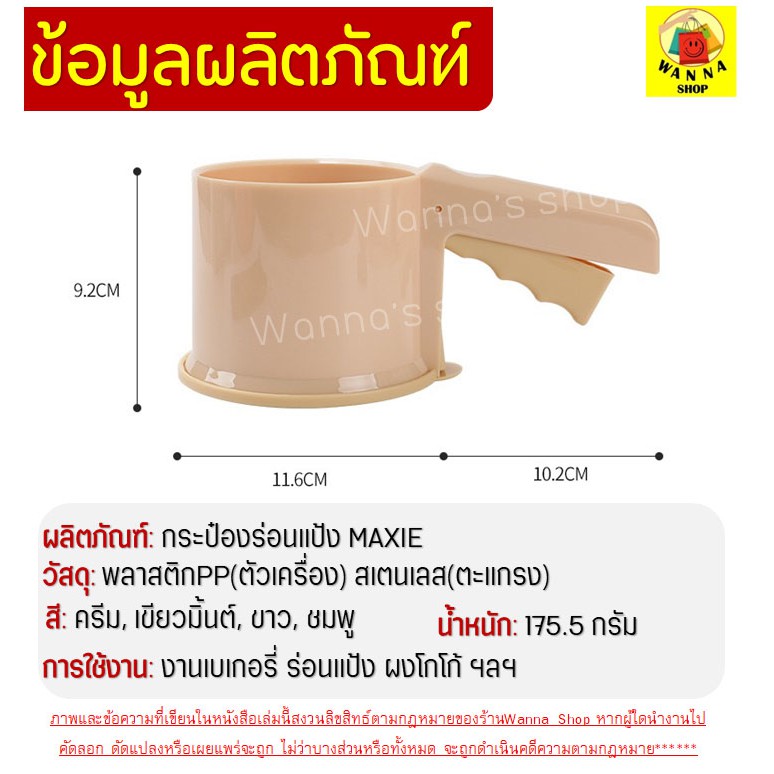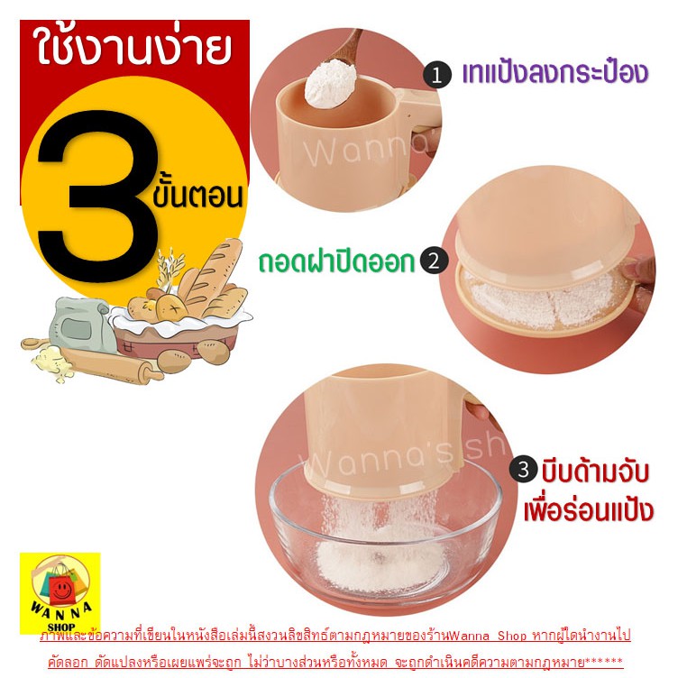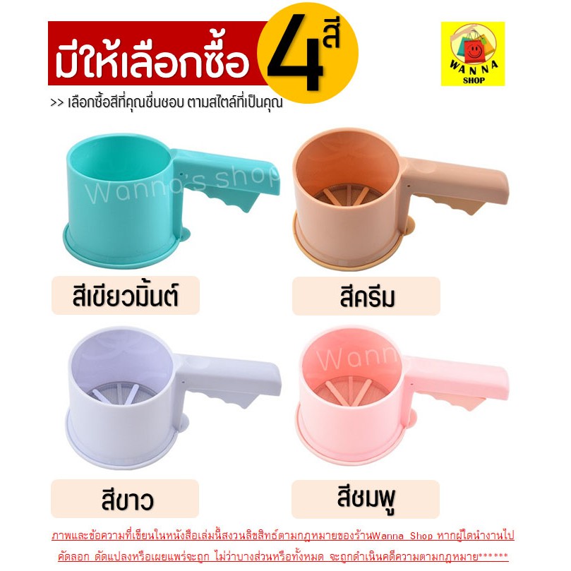 🔥ส่งฟรี🔥 ที่ร่อนแป้ง กระป๋องร่อนแป้ง WANNA ใหม่!ระบบมือบีบพร้อมฝาปิด มีให้เลือก4สี! โรยไอซิ่ง ถ้วยร่อนแป้ง ร่อนแป้งเค้ก