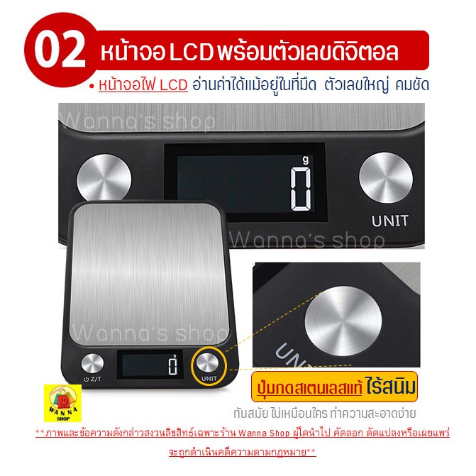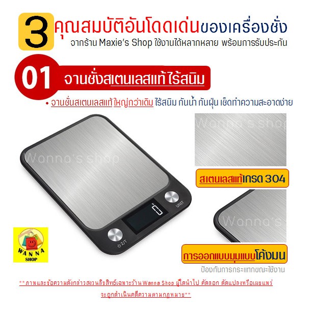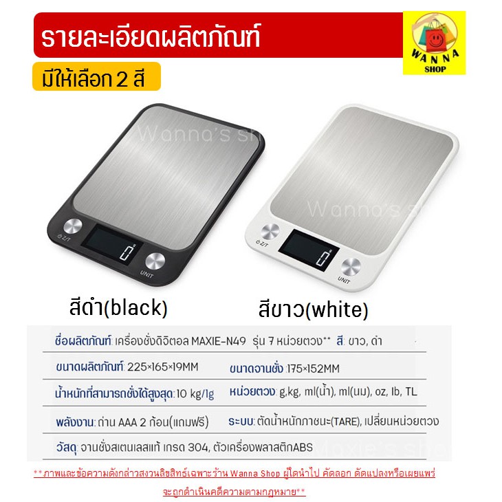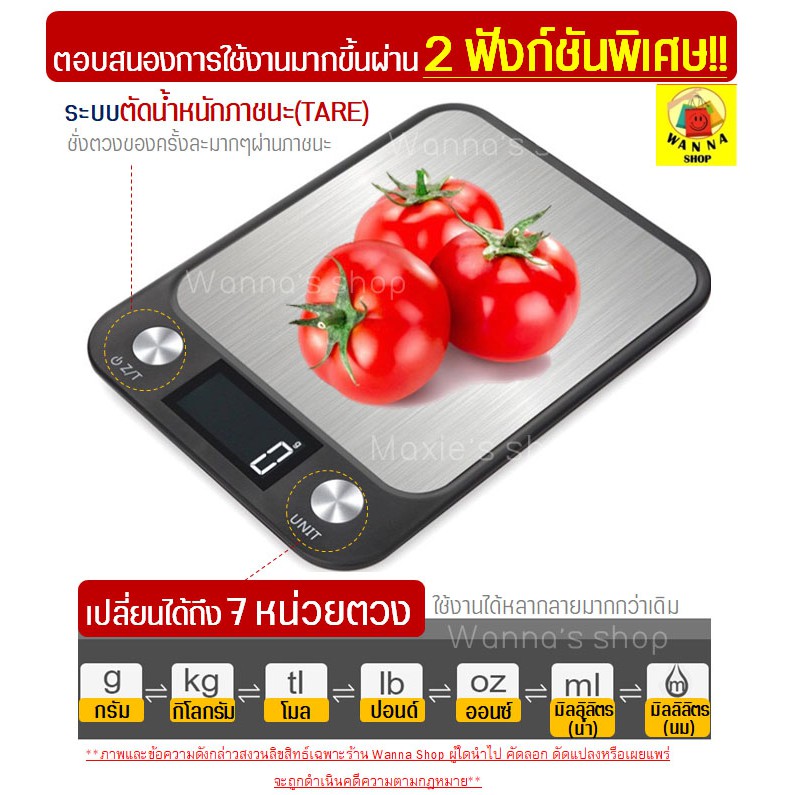 🔥ส่งฟรี🔥 เครื่องชั่งดิจิตอลแสตนเลสWANNA รุ่น10กิโล ฟรี!ถ่านAAA2ก้อน เปลี่ยนได้ 7 หน่วยตวง เครื่องชั่ง เครื่องชั่งดิจิตอล