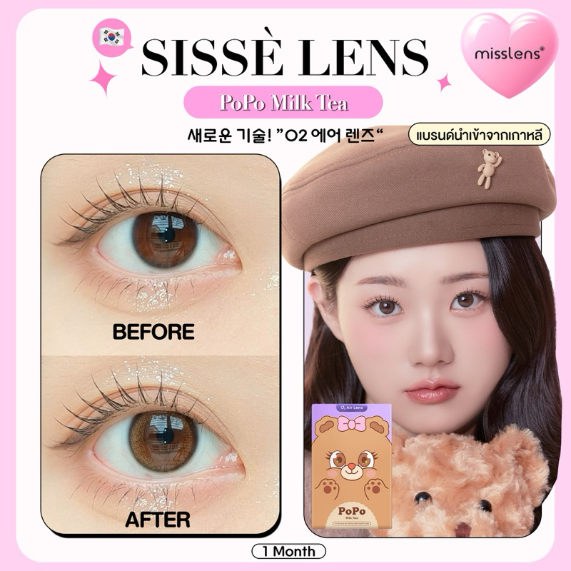 Misslens : Sisse lens คอนแทคเลนส์เกาหลี รุ่น Popo Milk Tea เลนส์บางเบา O2 Air lens รายเดือน