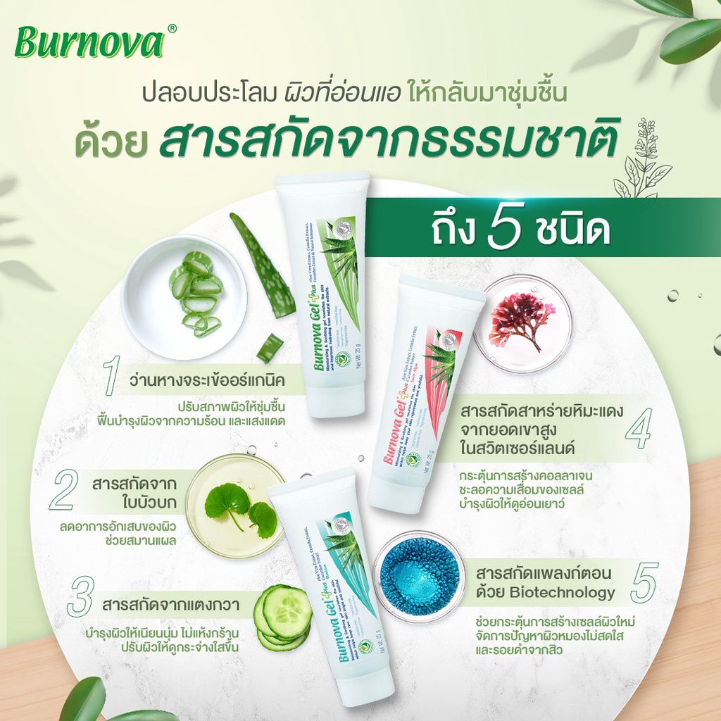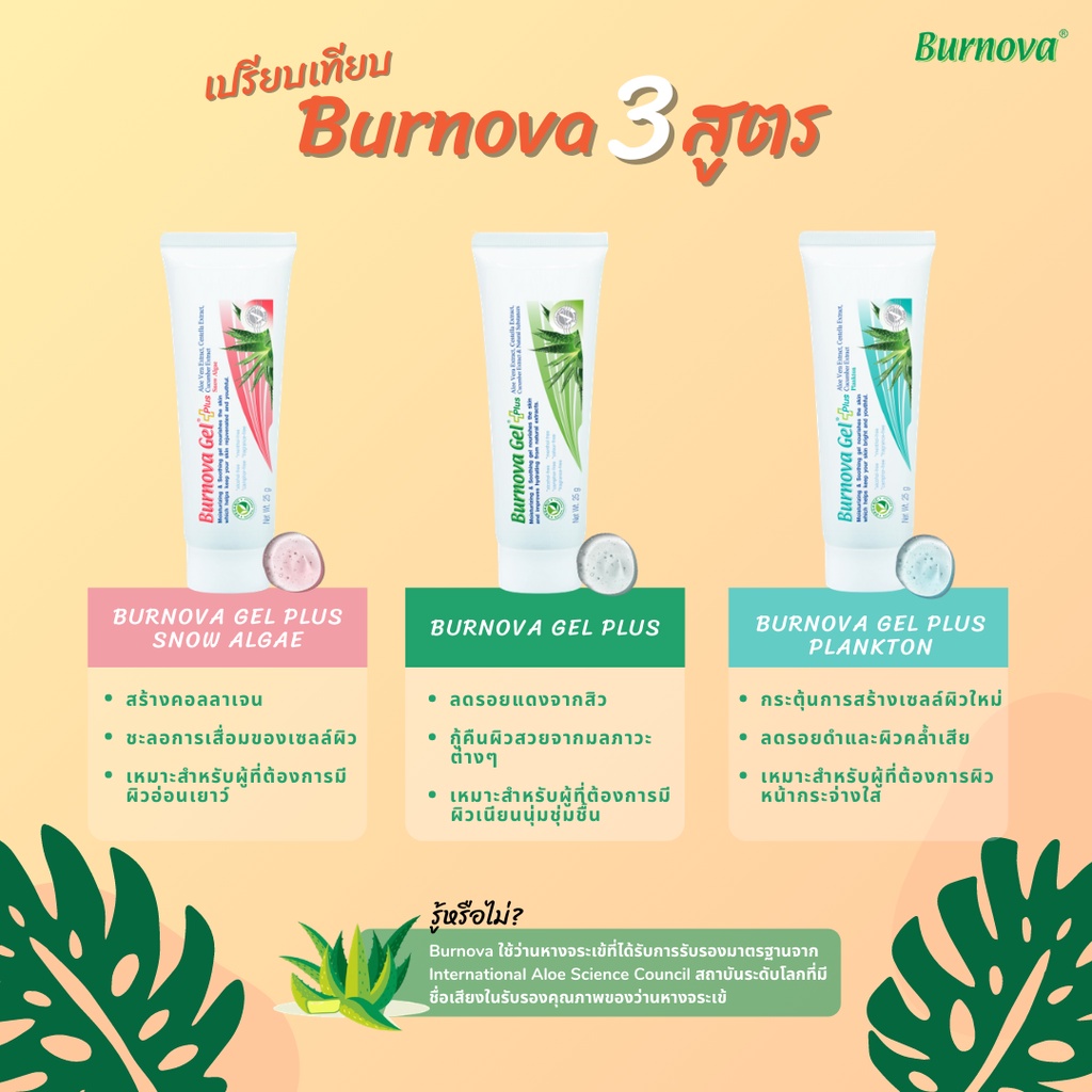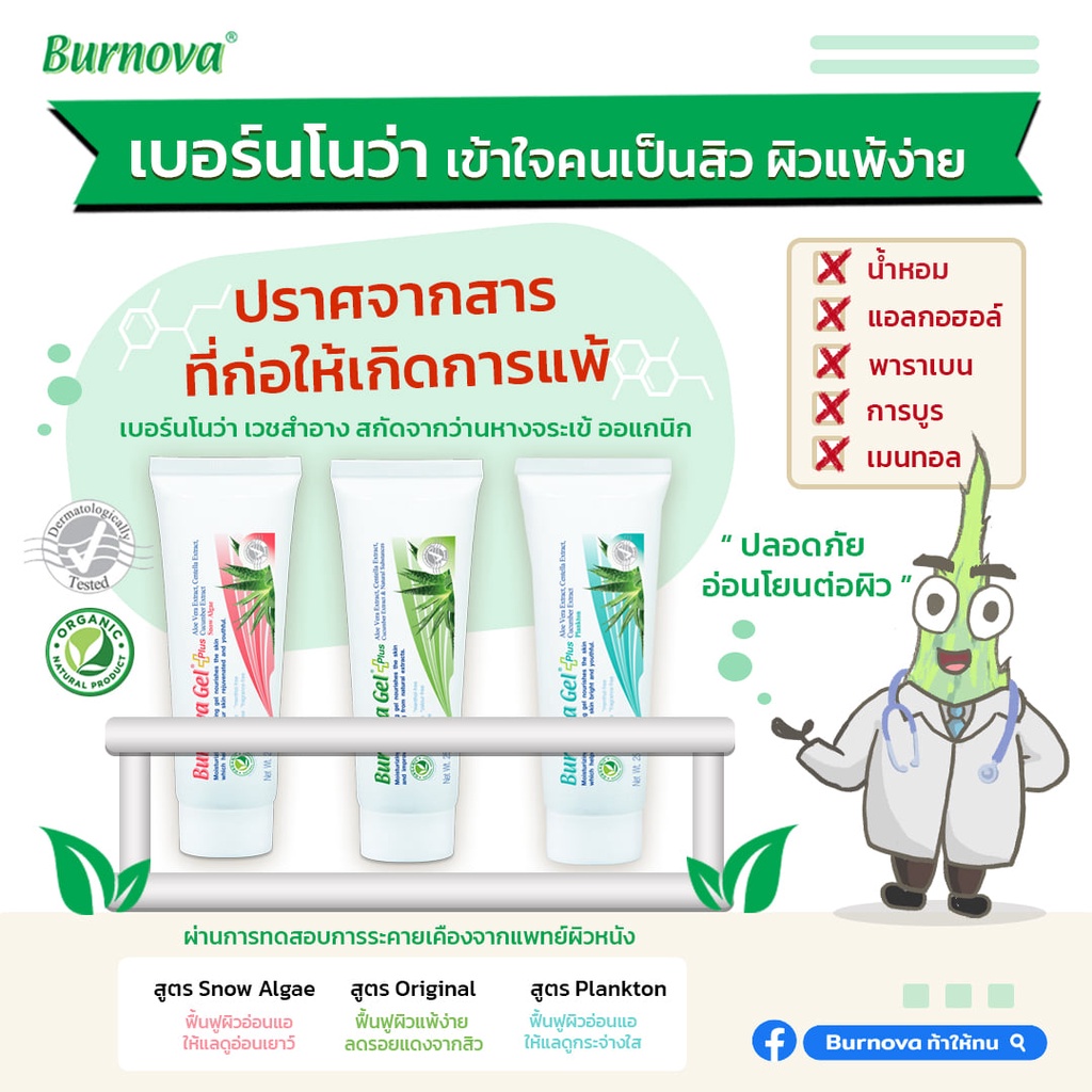 Burnova Gel Plus 25g. / 70g. เบอร์นโนว่า เจล พลัส เจลว่านหางจระเข้ บำรุงผิว รอยสิว ผิวกระจ่างใส