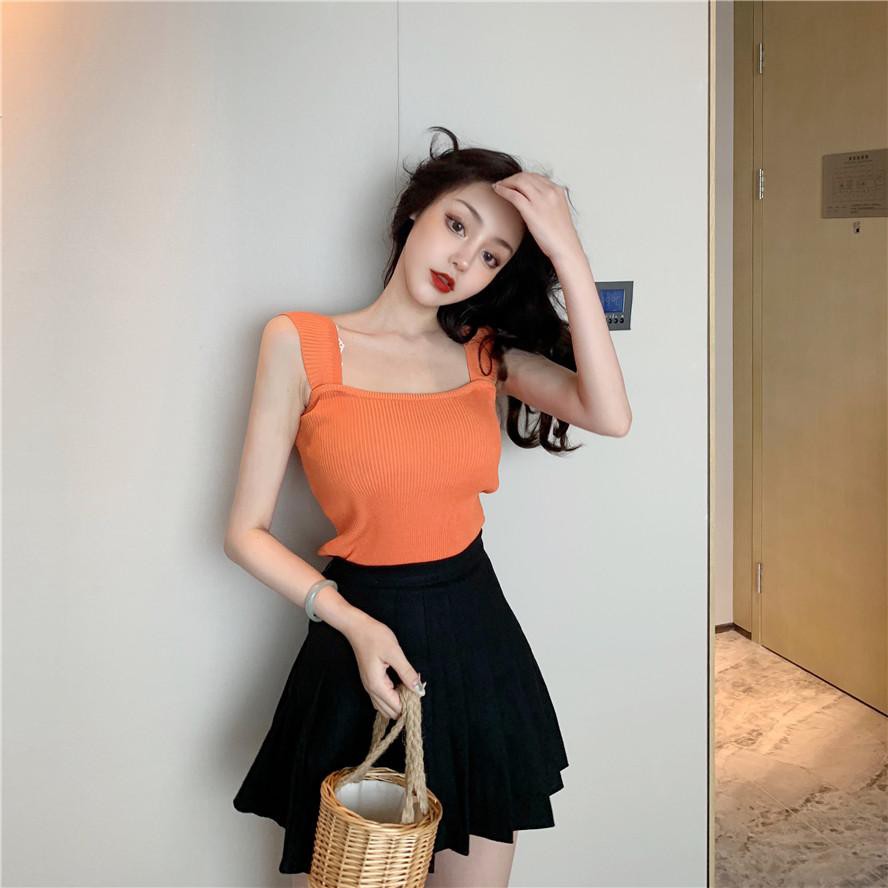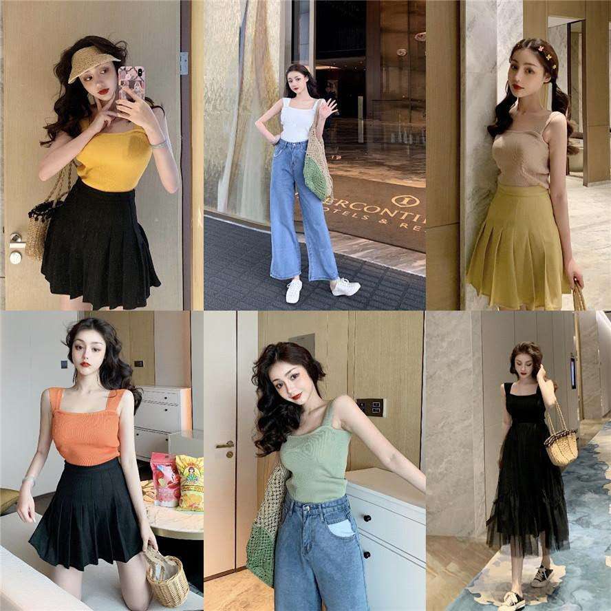 ส่งจากไทย(พร้อมส่ง/ใหม่)เสื้อสายเดี่ยว ไหมพรมสไตล์เกาหลีรุ่น#009