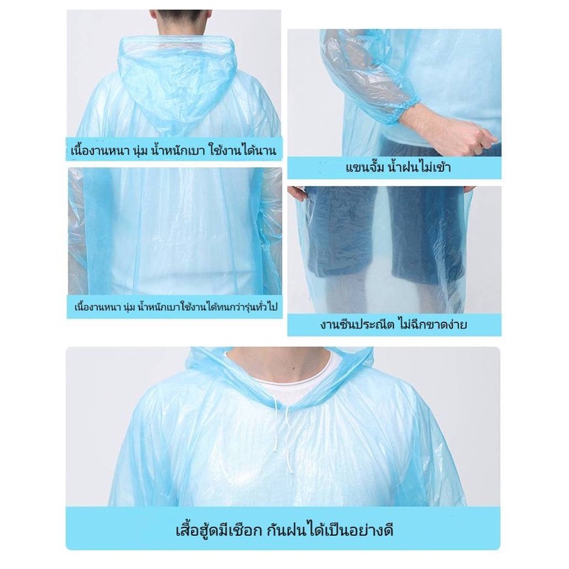 เสื้อกันฝนผู้ใหญ่ เสื้อกันฝนตัวบาง เนื้อหนา นุ่ม ทนทาน ใช้ซ้ำได้