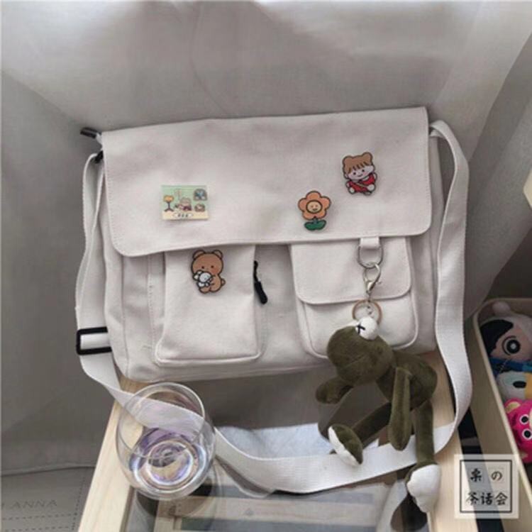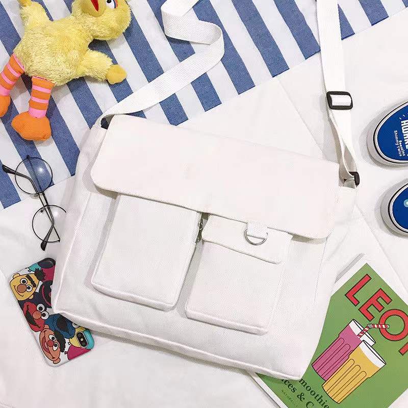 กระเป๋าสะพายข้างผู้หญิง กระเป๋าผ้าแคนวาสเกรดพรีเมี่ยม เนื้อผ้าหนา ทนทานต่อการใช้งาน เป็นทรงสวย