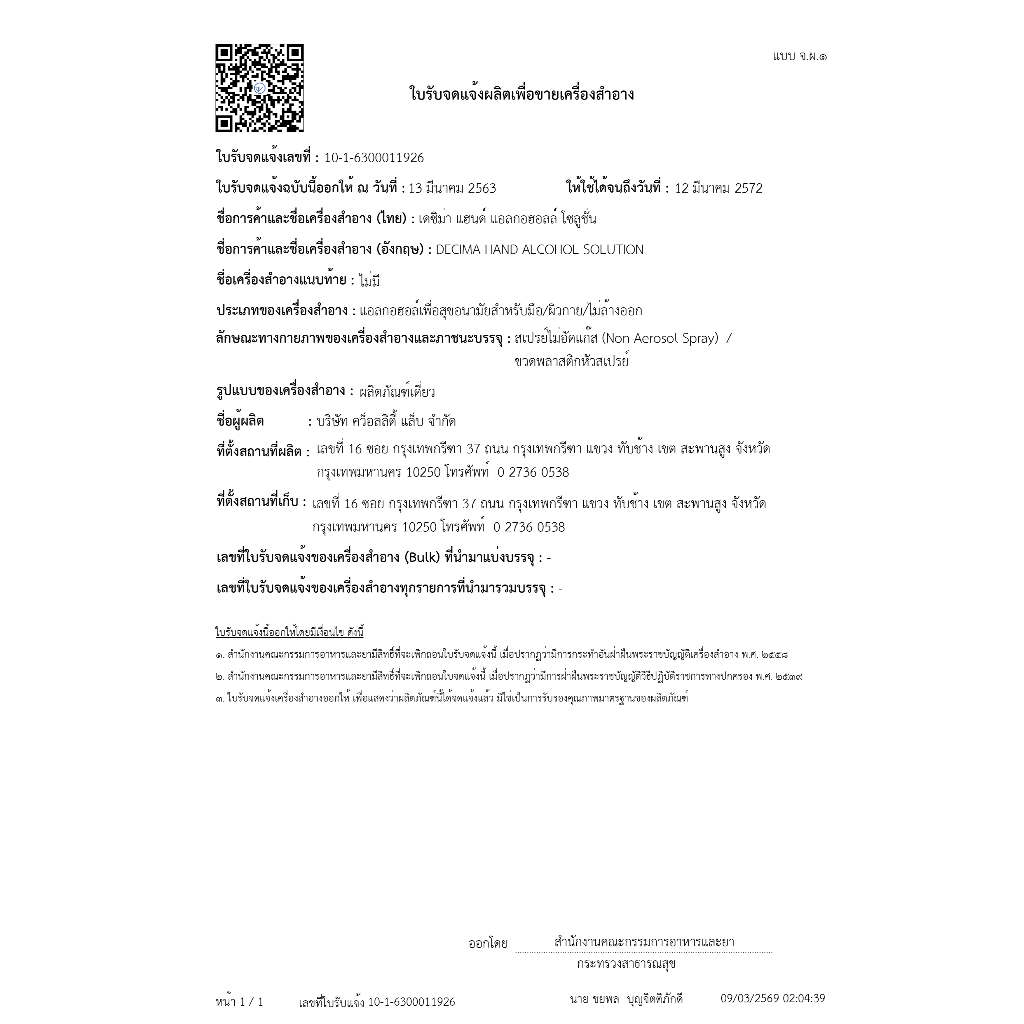 สเปรย์แอลกอฮอล์ 1 ลิตร แอลกอฮอล์ 72% Decima Alcohol Spray ปริมาณ 1,000 ml