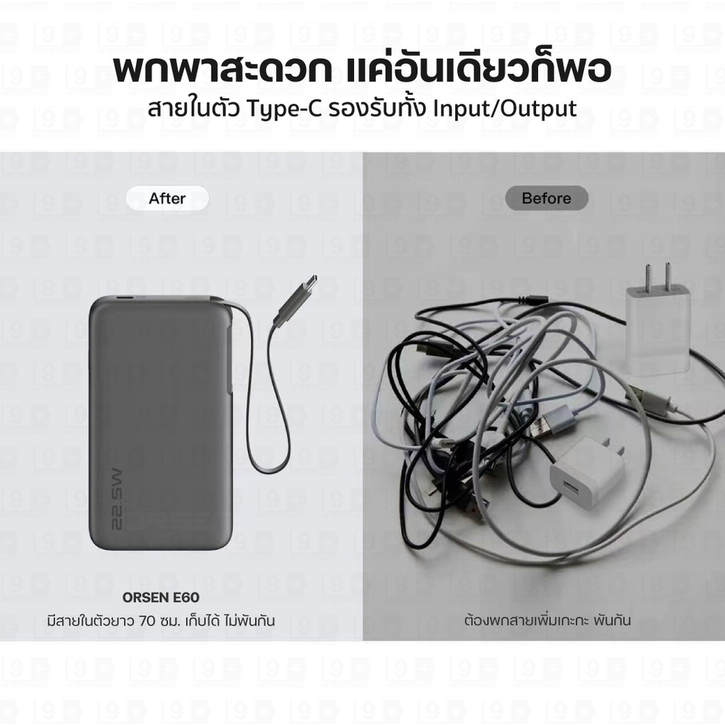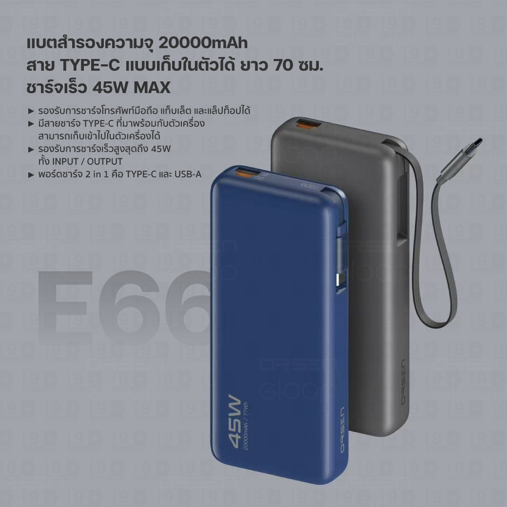 [674บ. ส่งด่วน] Orsen by Eloop E60 E66 แบตสำรอง 10000mAh/20000mAh ชาร์จเร็ว 22.5W/45W มีสายในตัว Type C PD PPS