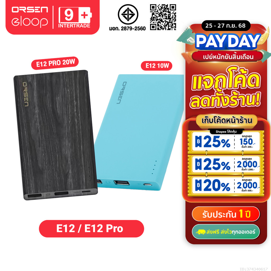 [399บ. PAYDAY] Orsen by Eloop E12 / E12 Pro แบตสำรอง 11000mAh ชาร์จเร็ว PD 20W PowerBank พาวเวอร์แบงค์