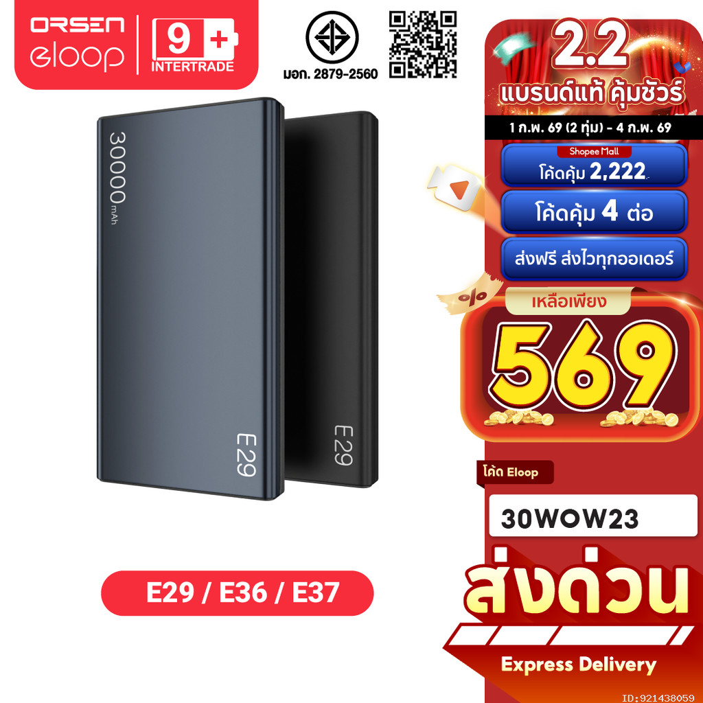 [619บ.โค้ดคุ้ม] Orsen by Eloop E29 30000mAh / E37 22000mAh / E36 12000mAh แบตสำรอง PD 20W ชาร์จเร็ว PowerBank
