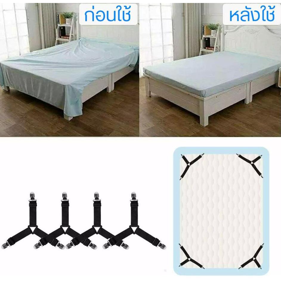 สายรัดหนีบมุมผ้าปูที่นอน 4 ชิ้น คลิปหนีบผ้าปูที่นอน ใช้ดึงกับโต๊ะ เตียงแบบอเนกประสงค์