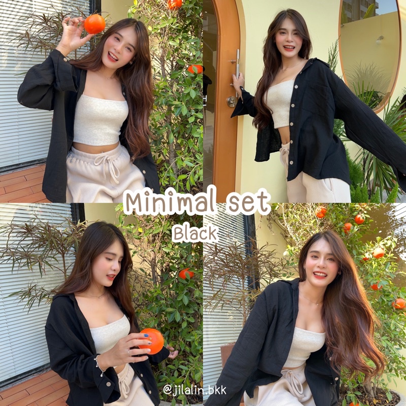 Jilalin.bkk🌷Minimal set✨เซตเสื้อคลุม+สายเดี่ยว เสื้อเชิ้ตสีพื้น โอเวอไซส์