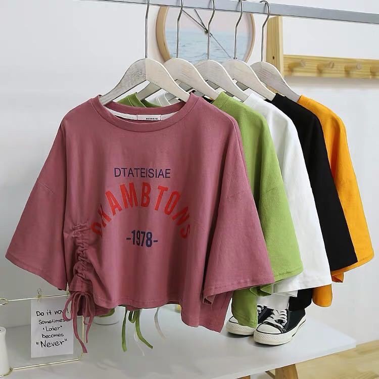 [กรอกโค้ด JGEVAPลดเพิ่ม 25%]เสื้อยืด เสื้อยืดคอกลมแขนสั้น รูดข้างได้เก๋ๆ สกรีน DTATEISIAE OHAMBTONS -1978-