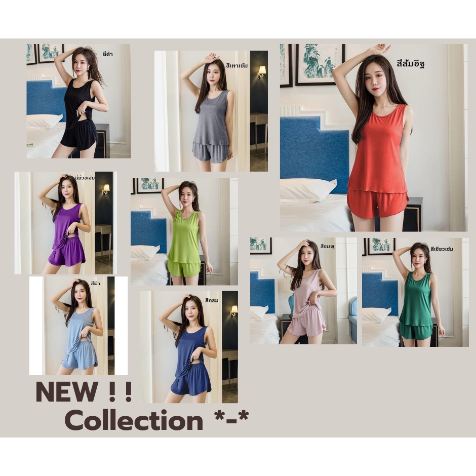 ชุดนอนมินิมอล ชุดนอน ชุดนอนเสื้อกล้าม+กางเกงขาสั้น ชุดนอนกางเกงขาสั้น รหัสAB