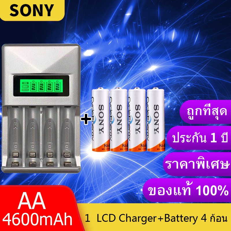 Sony ถ่านชาร์จ Charger+AA 4600 mAh(4 ก้อน )NIMH Rechargeable Battery (พร้อมจอแสดงผล)H