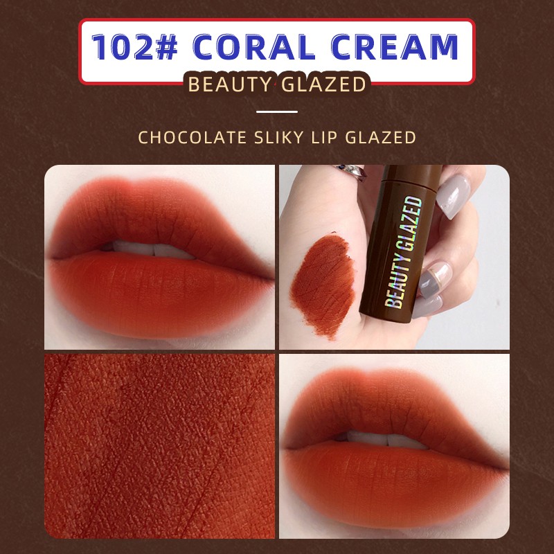 Beauty Glazed ลิปสติก ลิปกลอส เนื้อแมตต์ ช็อคโกแลต กันน้ํา ให้ความชุ่มชื้น