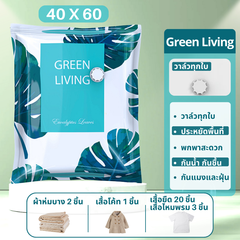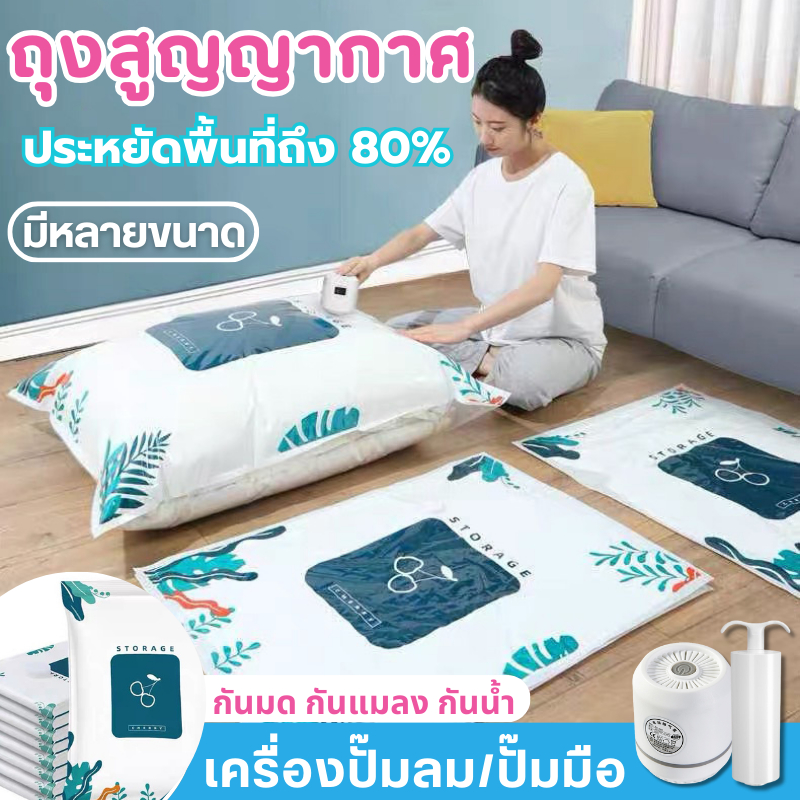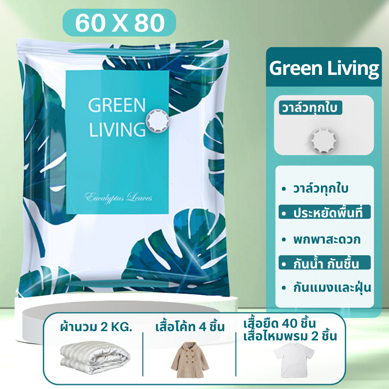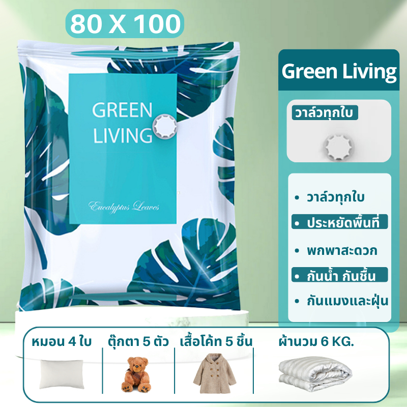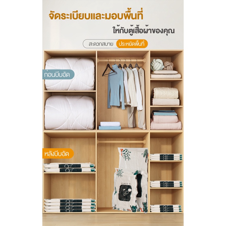 ถุงสูญญากาศ Vacuum Bag Big ถุงสูญญากาศจัดเก็บผ้านวมและเสื้อผ้ามีวาวล์ทุกใบ(ลายใบไม้)