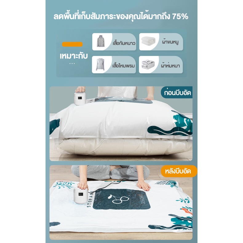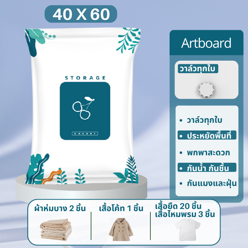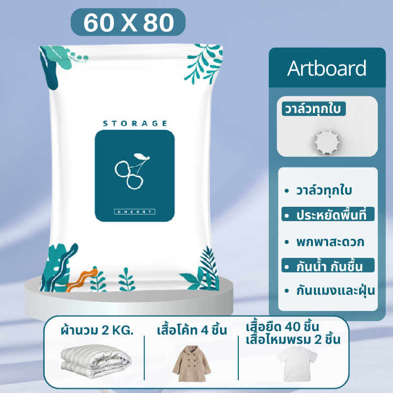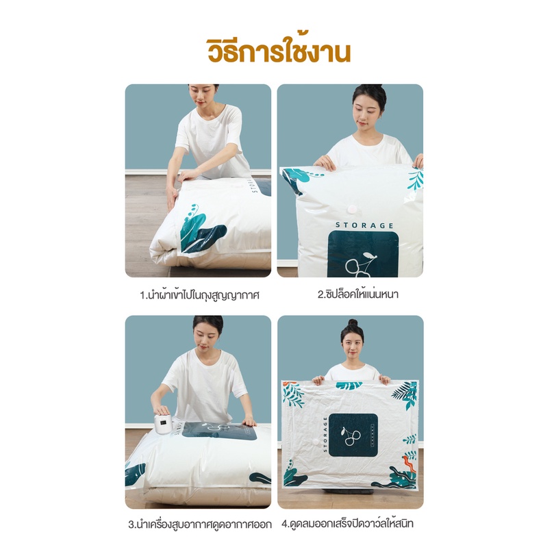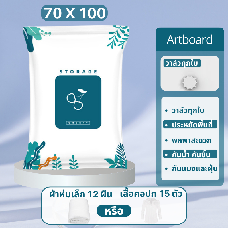 ถุงสูญญากาศ Vacuum Bag Big ถุงสูญญากาศจัดเก็บผ้านวมและเสื้อผ้ามีวาวล์ทุกใบ(ลายใบไม้)