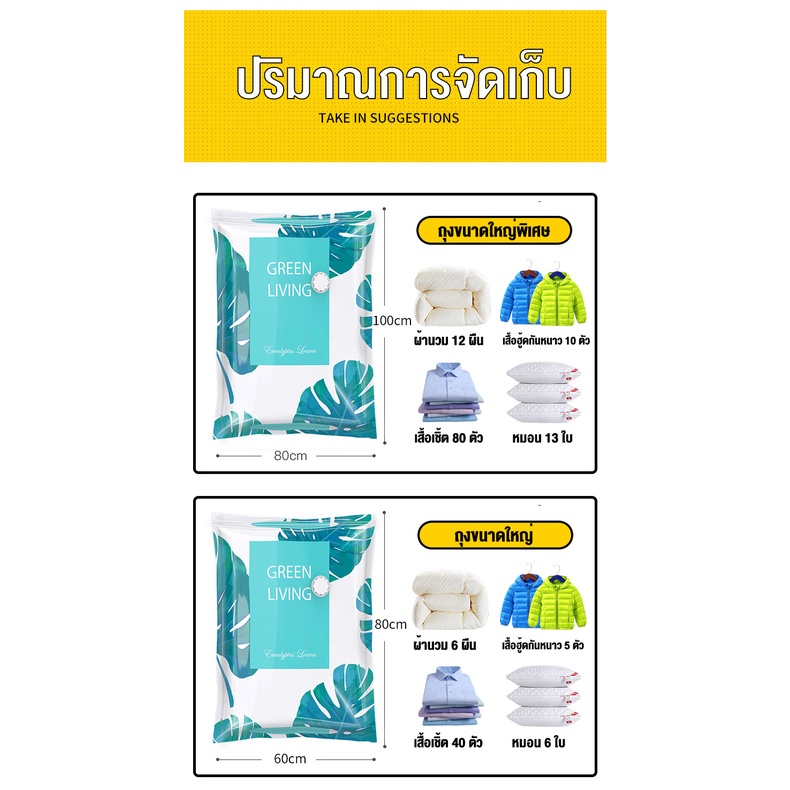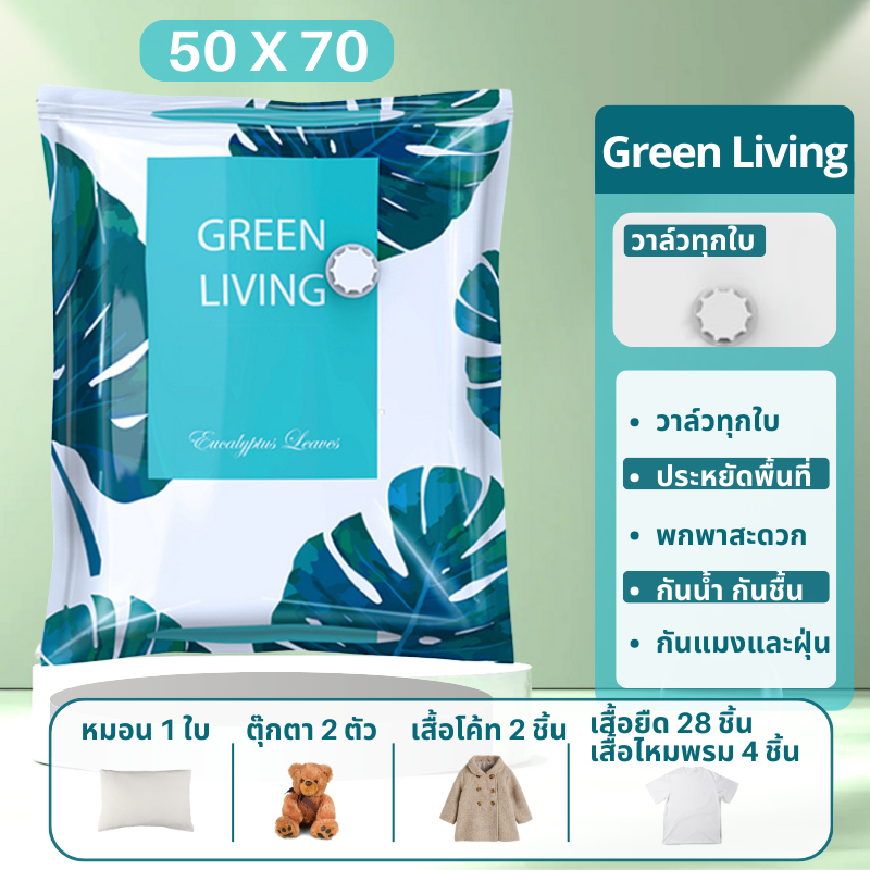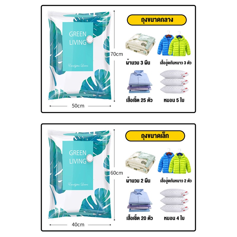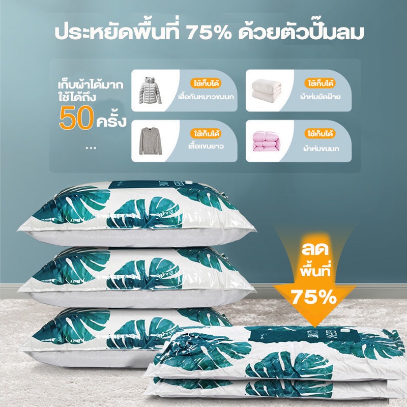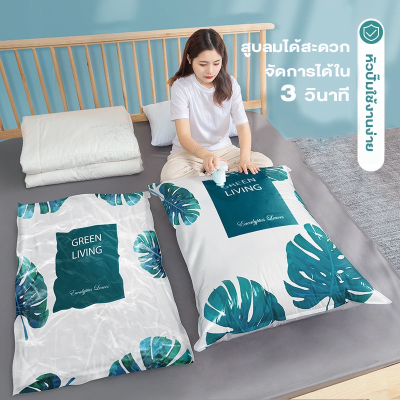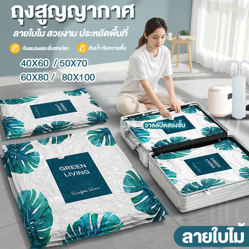 ถุงสูญญากาศ ถุงสูญญากาศจัดเก็บของช่วยประหยัดพื้นที่ (ลายใบไม้)