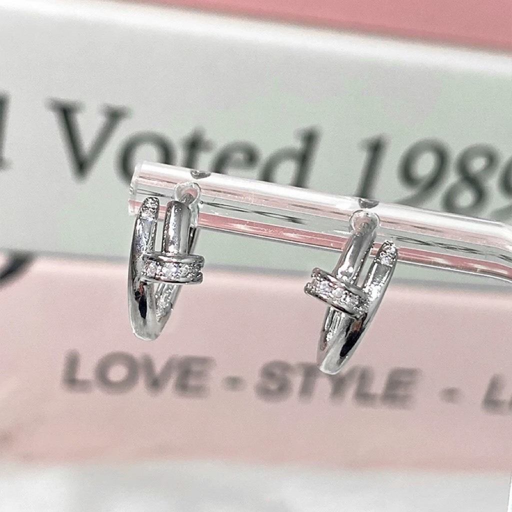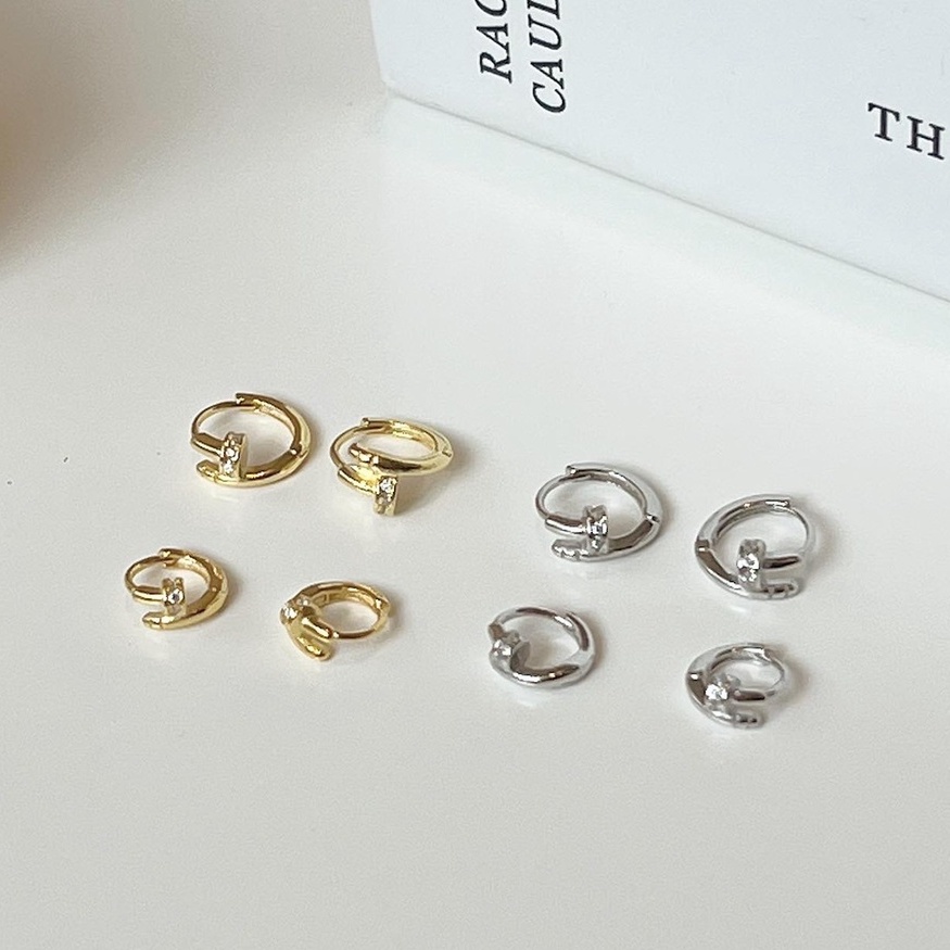 [ได้รับการรับรองเงินแท้] Suwann.na [ราคาต่อคู่] ต่างหูห่วง ต่างหูเงินแท้ ห่วงตะปู สีเงิน, ทอง