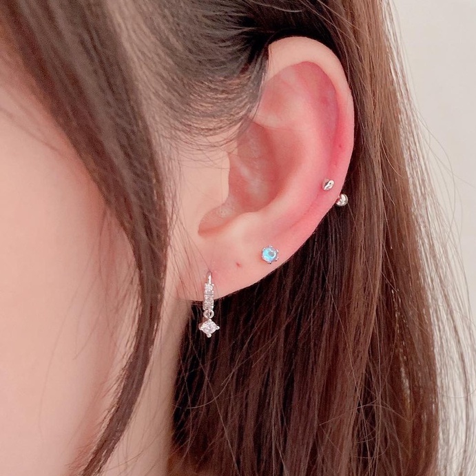 [ได้รับการรับรองเงินแท้] Suwann.na [ราคาต่อคู่] ต่างหูห่วง ต่างหูเงินแท้ ห่วงเพชรตุ้งติ้ง