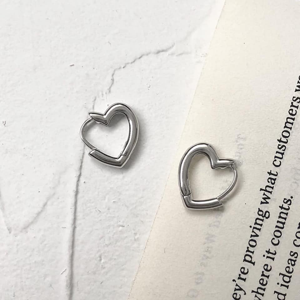 [ได้รับการรับรองเงินแท้] Suwann.na [ราคาต่อคู่] ต่างหูห่วง ต่างหูเงินแท้ ห่วงหัวใจ