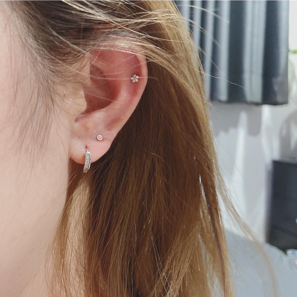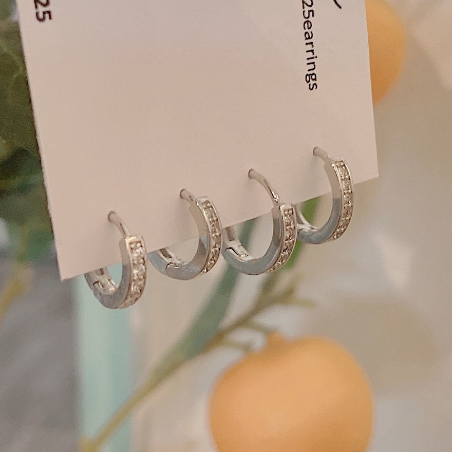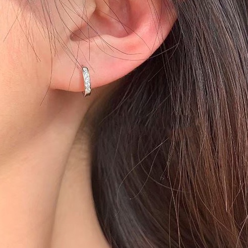 [ได้รับการรับรองเงินแท้] Suwann.na [ราคาต่อคู่] ต่างหูห่วง ต่างหูเงินแท้ ห่วงเพชรมีขอบ ขนาด 7, 9 mm