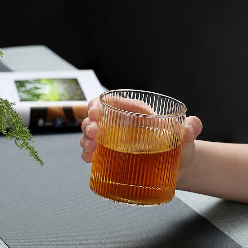 แก้วกาแฟ แบบใส ทนความร้อน ลายทาง สไตล์นอร์ดิก สำหรับใส่เครื่องดื่ม