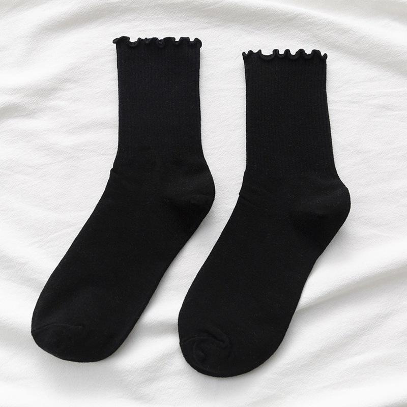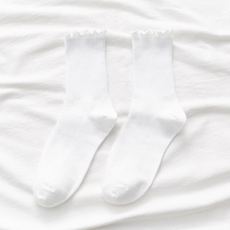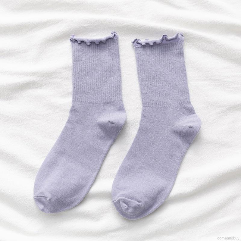 ถุงเท้าข้อมั้น ผ้าฝ้าย สีพื้น สไตล์เกาหลี สําหรับสตรี